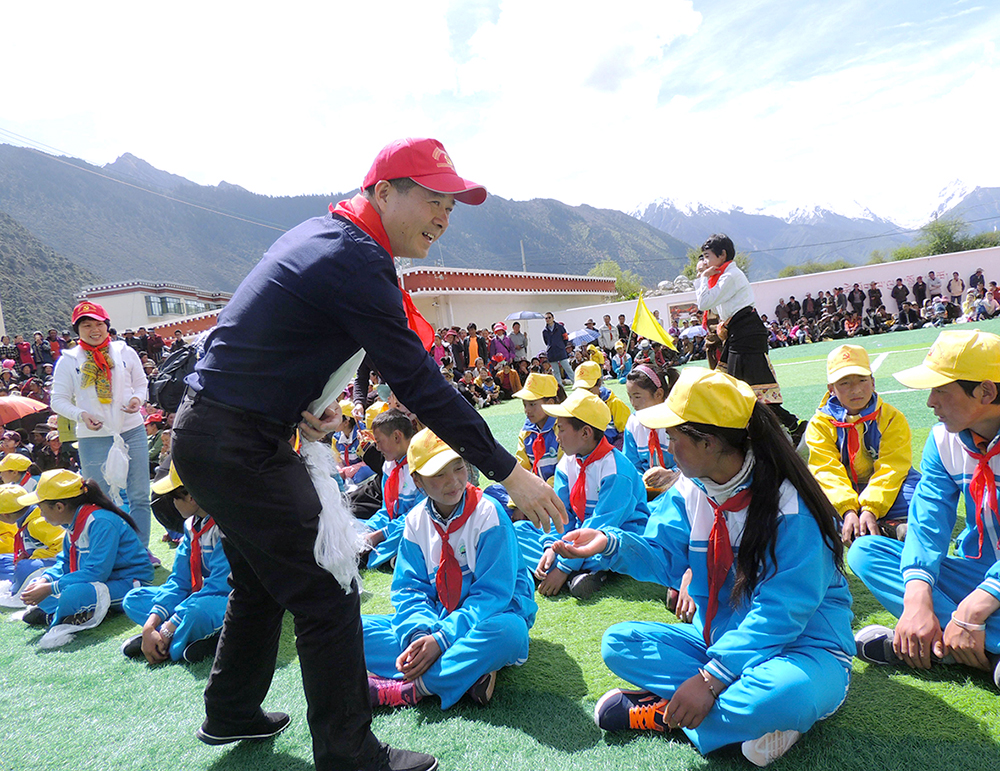 5月26日上午,在六一兒童節(jié)即將到來之際,雷諾表業(yè)總經理詹江洲先生攜團隊遠赴邊疆,走進西藏波密縣多吉鄉(xiāng)小學,提前和邊疆的孩子們歡度節(jié)日,為邊疆的小朋友們送去了祝福和溫暖。主人們?yōu)槔字Z表業(yè)的客人們獻上了白色的哈達,孩子們以當地具有民族特色的非遺歌舞-帕雄熱巴舞迎接遠道而來的客人。