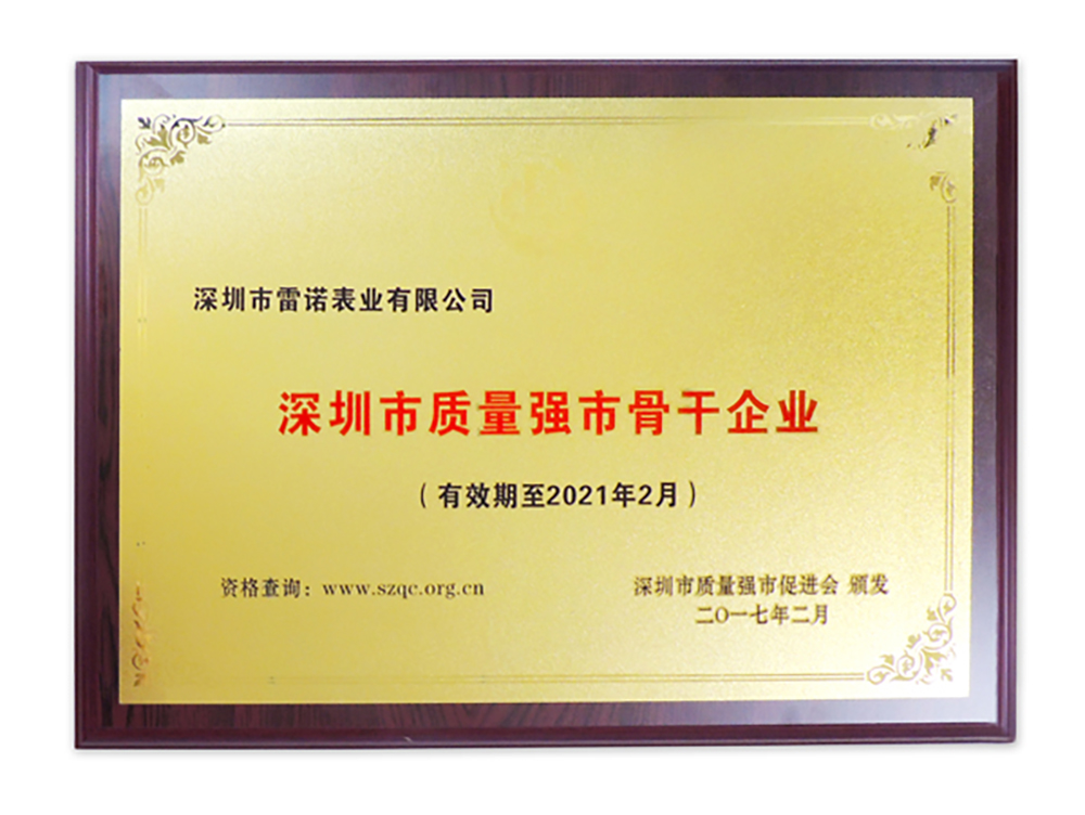 在本次2017年深圳市質(zhì)量強市促進大會暨深圳質(zhì)量建設(shè)年度盛典上,雷諾表業(yè)也榮獲深圳市質(zhì)量強市骨干企業(yè)、深圳市質(zhì)量強市卓越貢獻獎兩項殊榮,這是對雷諾表業(yè)以往的企業(yè)成績作出的肯定和嘉獎,更是激勵雷諾表再接再厲的強大動力,雷諾表業(yè)將繼續(xù)為鐘表質(zhì)量及深圳質(zhì)量把好質(zhì)量關(guān),以強質(zhì)量鑄強企業(yè)!