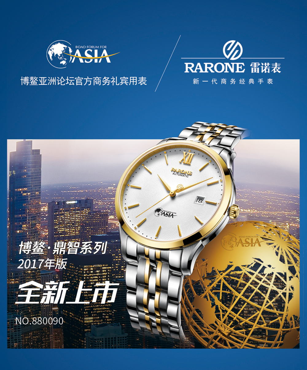 2017年3月23日-26日,博鰲亞洲論壇2017年會如期在海南博鰲鎮舉行,來自全球各國政府、工商界和學術界的領袖人物進行為期四天的高端對話,通過博鰲亞洲論壇年會為更具包容性的全球化出謀劃策。今年是雷諾表攜手博鰲論壇,成為博鰲亞洲論壇官方商務禮賓用表的第八年,八年之交,共勉共進!雷諾表持續以博鰲·鼎智系列商務腕表見證商界精英馳騁博鰲的風采。