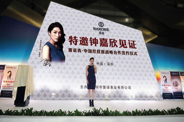 當天,鐘嘉欣現(xiàn)身雷諾“古典話筒”展館,引爆現(xiàn)場高潮氣氛,成為整個展覽的焦點,秒殺不少菲林。下午5時,鐘嘉欣佩戴雷諾贈送的手表,與雷諾表業(yè)董事長詹西洲、總經理詹江洲、《中國經營報》社長韓曦晨共同揭開“藝術之旅”系列新表款的神秘面紗,正式對外發(fā)布這一全新系列的新表款。